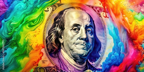 Chromatic Abstraction: Dollar bill as color palette, abstract patterns, vibrant hues, fluid movement, experimental composition