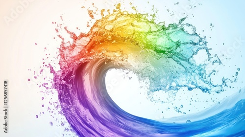 Chromatic Cascade, An iridescent splash wave against a soft background