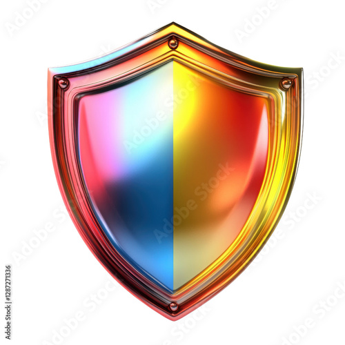 Chromatic Shield: A vibrantly colored shield, split diagonally with gleaming surfaces, symbolizing protection, security, and innovation. Its polished appearance reflects light.