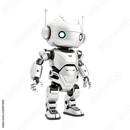 Chrome Robot, 3d Model, Isolated On White, Showcasing Technological Advancement. Futuristic Design And Clean Presentation. The Robot Is Perfect For Tech Illustrations. Its Sleek Aesthetic Appeals To