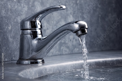 Chrome tap and basin with flowing water