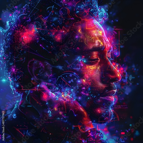 Chromosome Inspired Kaleidoscopic Portrait of Pensive Cosmic