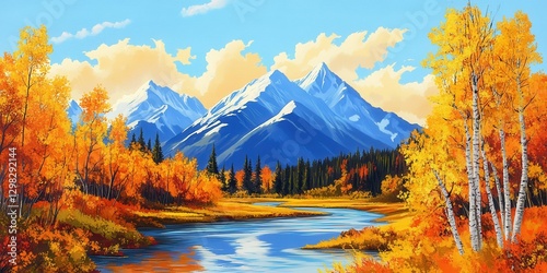 Chugach Mountains in Autumn: Birch Trees and Fall Colours along the Road to Eureka Peak, Alaska