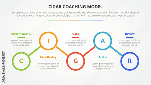 cigar coaching model infographic concept for slide presentation with outline circle line connection up and down with 5 point list with flat style