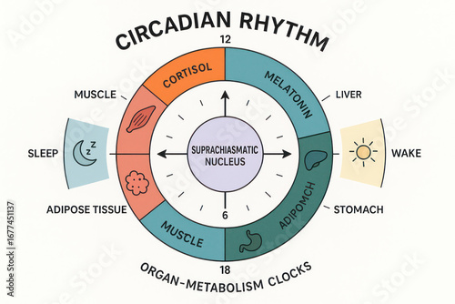 Circadian Rhythm and Organ-Metabolism Clocks Illustration - Biological Clock Diagram [Illustration]