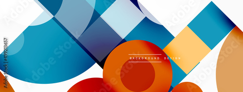 Circle and square geometric background. Round shapes with squares and triangles composition for wallpaper, banner, background or landing