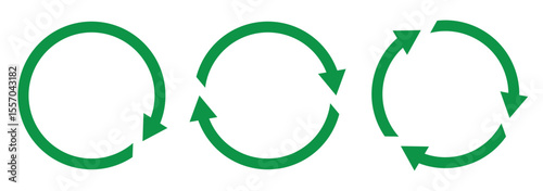 Circle arrow icon set. Green reload vector icon set. Symbol of reload, refresh, loading, recycle and repeat. Interconnecting round arrow vector icons set. Work in progress sign. Vector illustration
