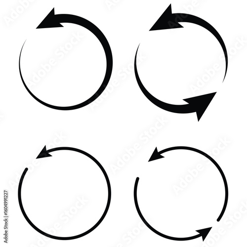 Circle arrows icon set. different circular arrows of white background. Black color, different thickness. Recycle icon set, refresh, repeat, Vector illustration eps10