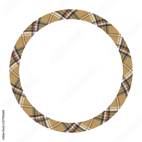 Circle borders and frames vector. Round border pattern geometric vintage frame design. Scottish tartan plaid fabric texture. Template for gift card, collage, scrapbook or photo album and portrait..