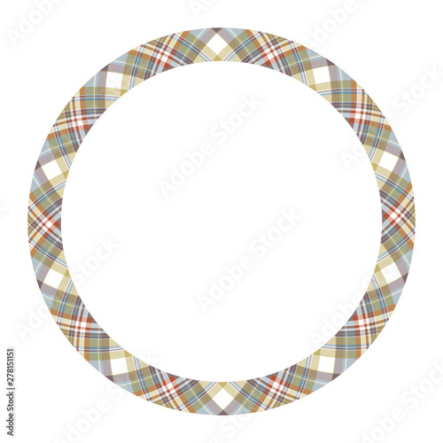 Circle borders and frames vector. Round border pattern geometric vintage frame design. Scottish tartan plaid fabric texture. Template for gift card, collage, scrapbook or photo album and portrait..