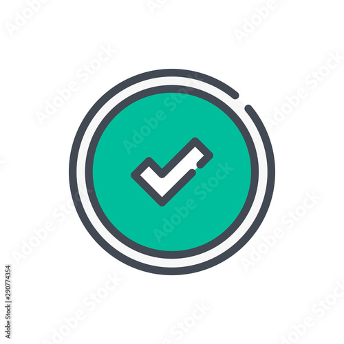 Circle button with check mark color line icon. Approve vector outline colorful sign.