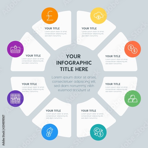 Circle chart money, charts infographic template with 8 options for presentations, advertising, annual reports