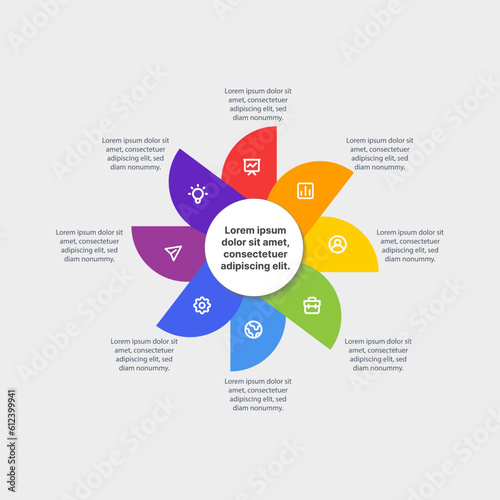 Circle colorful flower infographic with icon and text suits for business presentation stock illustrations