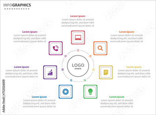 Circle infographic template with 7 options for presentations. Vector infographic design template. diagram, number options. Data visualization. Business concept with 7 steps, seven process.