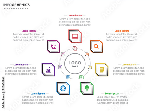 Circle infographic template with 7 options for presentations. Vector infographic design template. diagram, number options. Data visualization. Business concept with 7 steps, seven process.