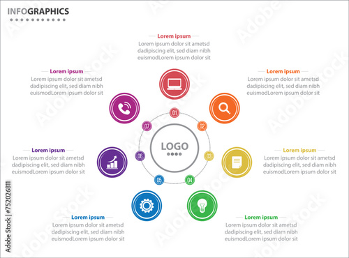 Circle infographic template with 7 options for presentations. Vector infographic design template. diagram, number options. Data visualization. Business concept with 7 steps, seven process.
