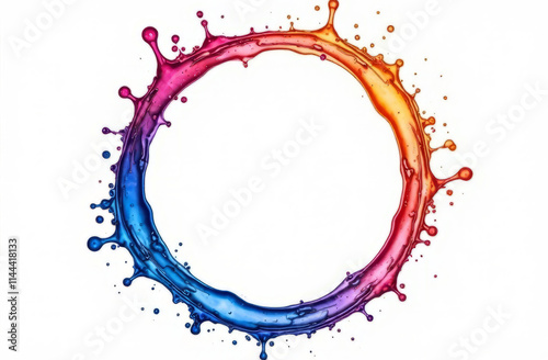 Circle Liquid Colorful Frame with Copy Space Isolated on White Background.