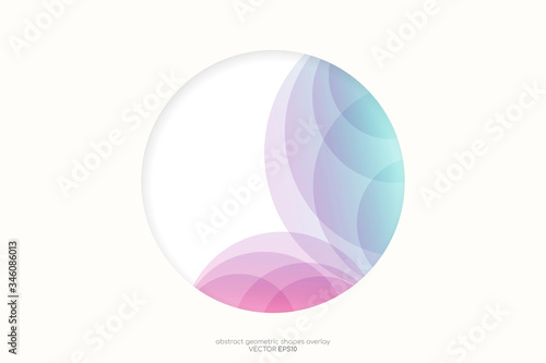 Circle shape frame paper cut above colorful transparent round shape overlay. Vector design for background, banner, presentation or card design.