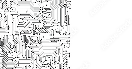 Circuit board electronic or electrical line on transparent engineering technology concept vector panorama background. Printed board background. Vector illustration.