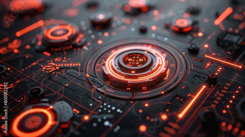 Circuit board with red glowing lights