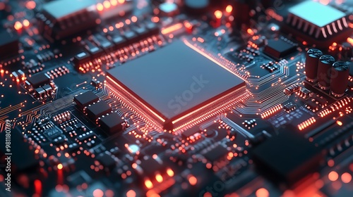 Circuit Board with Red Glowing Lines