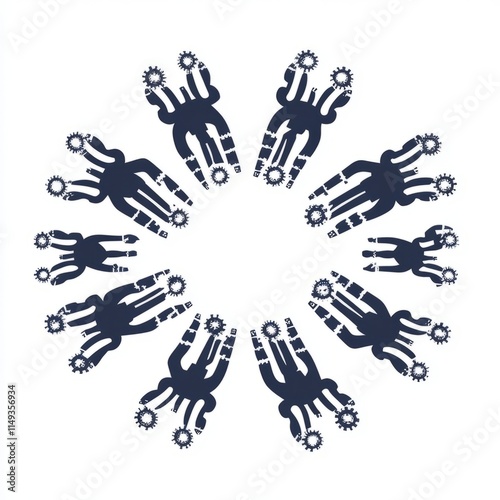 Circular Arrangement of Stylized Hands with Viral Elements