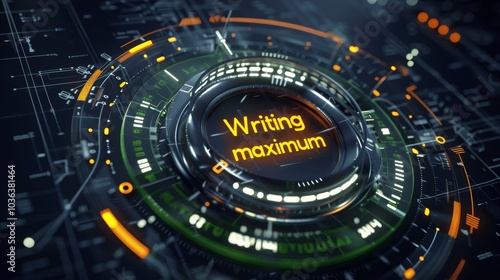 Circular Button Rendering with Writing Maximum Concept of High Level Dark Blue Background Futuristic Hologram Style Business Technology