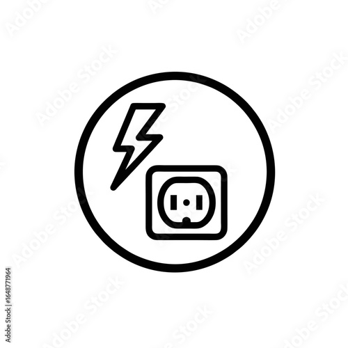 Circular Electrician Logo With a Power Outlet and Lightning Bolt, Strong Outlines
