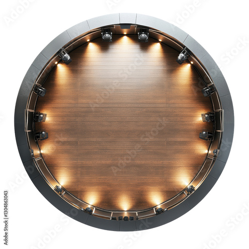 Circular Stage with Lighting: An overhead view of a circular stage with warm, inviting lighting, perfect for showcasing presentations, performances, or product displays.