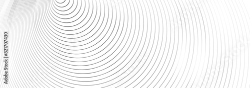 Circular stripe backgrounds. Abstract radial patterns with black lines. Rectangular monochrome backdrop. Vector illustration of sound wave irradiation or circular vibrations on the water surface.