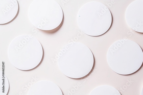 Circular white coasters arranged on a soft pink background, ideal for table settings or events