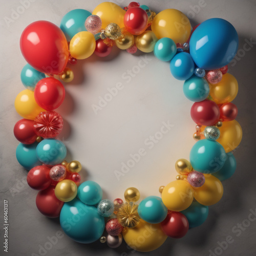 Círculo de balão coloridos visto de cima, centro para escrita, vazio, social media