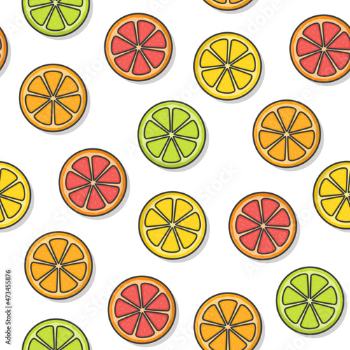 Citrus Fruit Seamless Pattern On A White Background. Fresh Orange, Grapefruit, Lemon, Lime Icon Vector Illustration