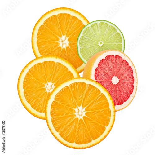 Citrus Medley of Orange, Grapefruit, and Lime Slices on White Background