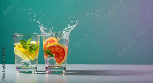 Citrus Splash Drink with Grapefruit and Mint on Blue