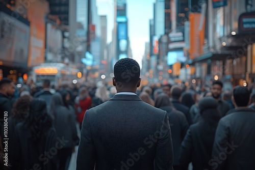 City Commuter Anonymous Mans Back View in Diverse Crowd
