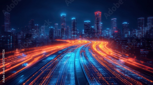 City highway at night, futuristic traffic flow, urban landscape, website banner