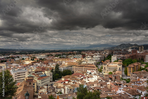 city of granada from albicin quarter, aerial withe of granada from albicin quarter during a cloudy day