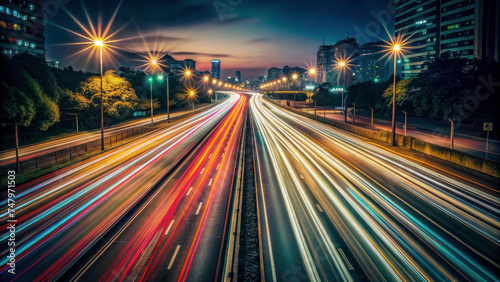 City Road Lights: Abstract Nighttime Highway Traffic with Motion Blur Effect