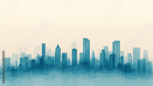 City Skyline Illustration with Blue Gradient and Soft Background