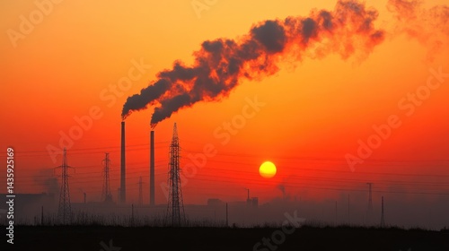City skyline obscured by thick smog from industrial pollution, contributing to climate change