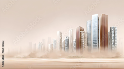 City skyline shrouded in extreme heat, symbolizing the effects of climate change on urban areas.