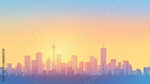 City skyline silhouette at sunrise pastel colors urban landscape vector illustration