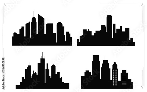 City Skyline Silhouette Set – Urban Architecture Variants in Grid Format