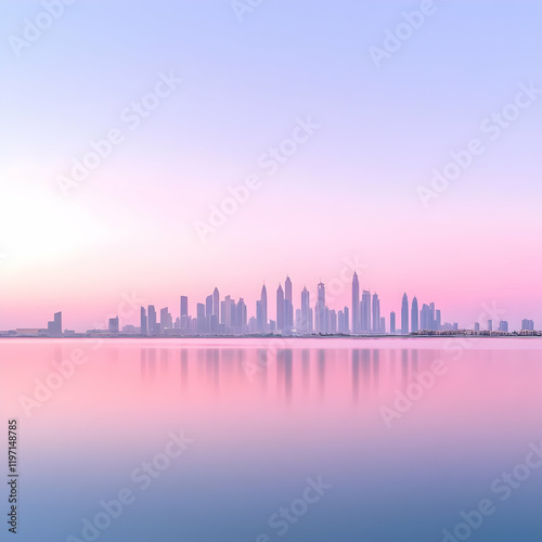 City Skyline Sunrise - Pastel Background Illustration