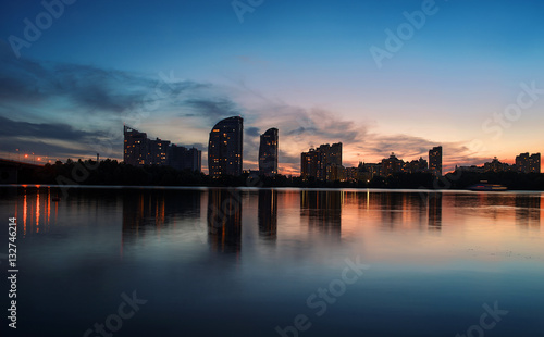 Cityscape: Moscow brindge and Obolon district in the evening. Kiev. Ukraine. East Europe