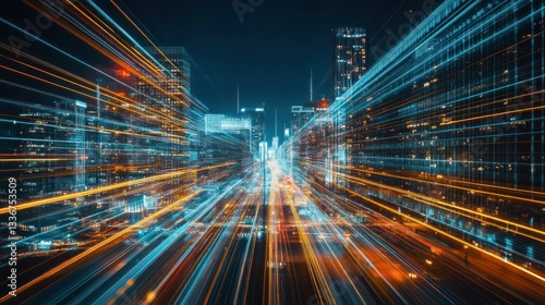 Cityscape, night, light trails, speed, technology, future, urban, abstract, progress, data