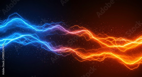 Clash of Elements: Abstract digital art depicting a fiery orange lightning bolt clashing against a cool blue one, creating a mesmerizing visual spectacle.