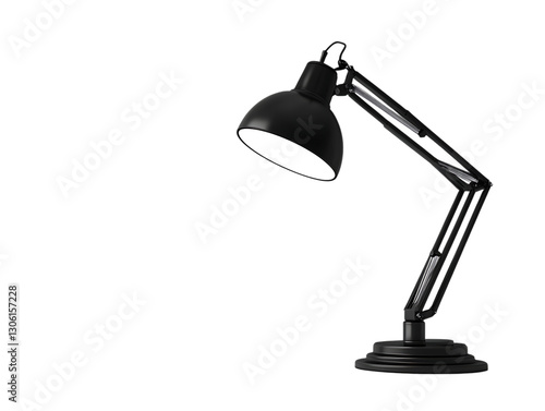 Classic adjustable desk lamp glowing against a dark background. Concept of focus, work, or late nights.
