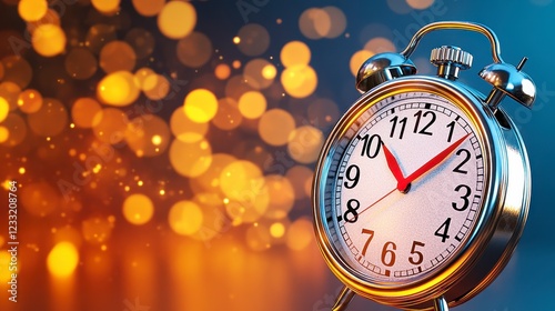 Classic Alarm Clock Against Vibrant Bokeh Background with Glows